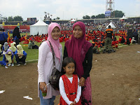 Kami menuju ke rumah teman (Mas Saptoni dan Mbak Adien, dengan si manis Ghanisa) dan mandi disana. Setelah semua mandi dan sarapan, kami pun menuju ke lokasi pembukaan muktamar Muhammadiyah di stadion Mandala Krida. Kami sudah agak siang kesana sekitar jam 10-an. Kami kira acaranya sudah selesai karena banyak orang yang berlawanan arah dengan kami dan meninggalkan stadion. Ternyata, setelah sampai di stadion acara baru dimulai. Mereka banyak yang pulang mungkin karena udaranya sangat panas. Alhamdulillah, kami masih bisa masuk ke lokasi acara sehingga bisa melihat secara langsung, karena layar di luar lokasi tidak jelas gambarnya.