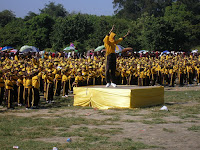 Sebelum senam dimulai anak-anak begitu datang langsung berbaris di lapangan. Dan menyaksikan atraksi drum band dari beberapa TK. Kasihan juga anak-anak kepanasan, tapi hitung-hitung latihan ketahanan juga ya…he he he…