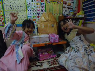 Maka, seperti keluarga-keluarga muslim yang lain, maka kami juga berusaha untuk melatih Kayla berpuasa. Alhamdulillah, puasa tahun ini, Kayla “hampir” bisa puasa penuh sampai maghrib. Saya katakan”hampir” karena dari 15 hari yang telah berlalu, ada beberapa hari yang belum sampai maghrib, tepatnya hari-hari awal bulan Ramadhan. Perinciannya, 1 hari tidak puasa karena sakit, badannya panas dan muntah-muntah, 1 hari puasa setengah hari (saat Dhuhur berbuka, habis itu puasa dilanjut lagi sampai maghrib), 2 hari puasa sampai jam 16.00. Setelah itu, alhamdulillah bisa puasa penuh. Walau kadang kalau habis pulang sekolah ada keinginan untuk berbuka, tapi berhasil kami “tahan” hingga saatnya tiba. Memang kadang terbersit rasa tidak tega juga kalau melihat bibirnya kering dan agak lemas. Tapi kami yakin ia bisa. Tak lupa kami memberikan penjelasan mengapa kita harus berpuasa satu bulan penuh, Dan semoga 15 hari berikutnya Kayla bisa bertahan yaa... amiiin...
