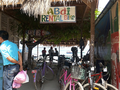 Sesampainya di Trawangan, kita bisa berjalan menyusuri pantai. Atau kita bisa menyewa cidomo (cikar, dokar, motor) hampir mirip delman. Biaya per orang Rp 50 ribu. Satu cidomo bisa mengangkut 4-5 orang.