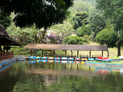 Danaunya juga sangat menarik. Di tengah-tengah danau ada tiga buah patung yang besar sehingga begitu menarik perhatian. Ada patung Sun Go Kong, Pat kai dan teman-temannya sedang naik penyu raksasa seolah-olah menyeberang danau itu. Ada juga patung tokoh pewayangan yang sedang naik kereta kuda. Satu lagi ada patung yang tinggi, tapi patung apa ya itu... wajahnya sih mirip burung hantu...