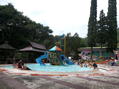 Akhirnya rasa penasaranku yang sudah lama terpendam pun tercurahkan (halllaah...). Saat kami sekeluarga berkesempatan pergi ke Songgoriti, tepatnya di Pemandian Tirta Nirwana Songgoriti. Meski nggak sengaja sih kesininya.... eh kok nggak sengaja gimana? Ya iya lah lha wong saat itu kami menginap di salah satu vila disana, tujuan utama ke Museum Angkut. Kami menyewa vila agar terasa kebersamaannya bersama rombongan sekeluarga suami. Kalau menyewa hotel kan masing-masing berada di kamarnya, kalau di vila kan bisa bareng-bareng terus kayak di rumah sendiri. Nah, pagi-pagi habis jalan-jalan dan nyantai di sekitar vila tiba-tiba ada yang punya ide pingin berenang, terutama para krucil yang pingin banget njegur ke kolam renang. Terus ada yang bilang ke pemandian Songgoriti aja yang dekat... Akhirnya setelah sarapan sebagian dari kami ikutan dan sebagian ada yang tetap di vila (adik ipar yang sedang hamil besar dan adik ipar yang masih punya bayi nggak ikutan, juga ibu mertua). Aku, tentu ikutan doongg... mumpung ada kesempatan, jangan sia-siakan. Wualaaahhh, aku pun makin penasaran gimana sih yang namanya pemandian Songgoriti itu.