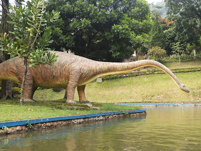 Masih di area danau, terdapat patung hewan purba kayak dinosaurus gitu lehernya sangat panjang seolah-olah mau minum air danau... Senenglah ngelihatnya, meski danau ini tidak terlalu luas tapi di sepanjang tepian danau ditanami berbagai macam bunga mawar berwarna-warni yang semakin mempercantik danau ini.