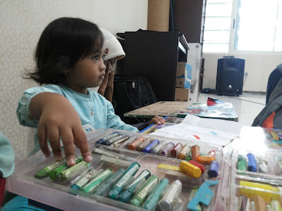 | Athiyah juga serius menggambar nih |