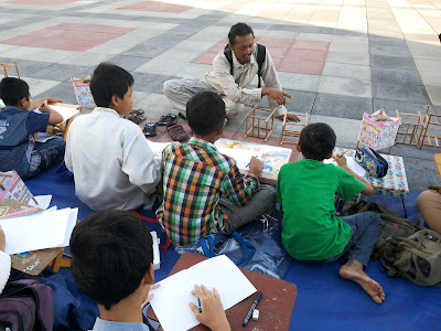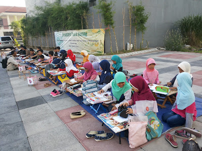 Para peserta pun asyik melukis di ruang terbuka dengan merasakan hembusan angin sore yang semilir sepoi-sepoi.