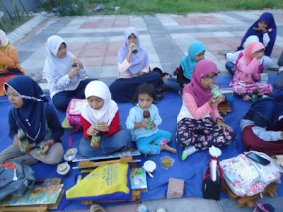 Waktu terlalu cepat berlalu, hingga adzan maghrib pun berkumandang yang menandakan semua peserta harus segera berbuka puasa. Mereka pun menikmati takjil yang sudah disiapkan oleh panitia.