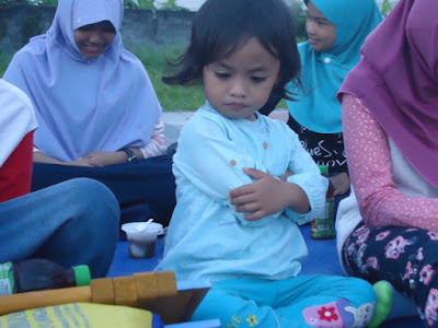 Ada kejadian lucu nih... saat pembagian takjil Athiyah belum dapat takjilnya, iya lah dia kan hanya ikut-ikutan aja disini. Athiyah pun meminta jatah takjil kakaknya. Dia pun sempat cemberut karena belum dapat takjil. Coba lihat saja ekpresinya