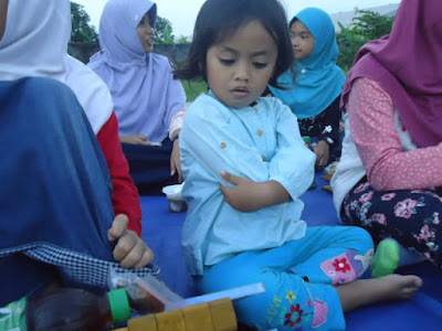 Ada kejadian lucu nih... saat pembagian takjil Athiyah belum dapat takjilnya, iya lah dia kan hanya ikut-ikutan aja disini. Athiyah pun meminta jatah takjil kakaknya. Dia pun sempat cemberut karena belum dapat takjil. Coba lihat saja ekpresinya