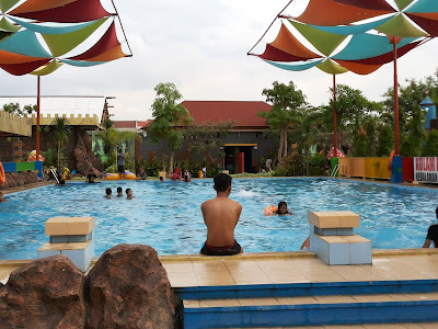 Kami berkunjung (haissh...pakai kata berkunjung lha wong tetangga dekat sama rumah, nggak sampai 5 menit otw kesana) di sisa akhir liburan lebaran kemarin. Ternyata di kawasan Dynasty Waterworld ini banyak wahana yang bisa dinikmati oleh para pengunjung (itu pun kalau punya nyali besar). Tak perlu khawatir karena di setiap wahana disiagakan pool guard yang selalu siap membantu.