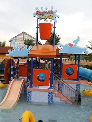 Namanya aja Kiddy Pool, dirancang untuk anak-anak dengan kedalaman 30-50 cm. Di tengah-tengahnya ada Rumah Kincir dan Ember Tumpah, ada pula sensasi hujan dan beberapa perosotan. Athiyah seneng banget dengan perosotannya, nggak capek-capek bolak balik perosotan
