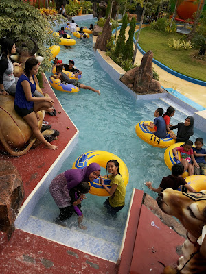 Pergi ke wisata air macam waterpark kan nggak perlu sering-sering sih agar nggak jebol anggaran belanja negara, eh anggaran belanja keluarga (padahal awalnya bila htm nya nggak mahal berharap sering-sering kesana untuk Kayla berlatih renang, eh aku juga sih biar nggak gaya batu melulu bisanya). Dan juga bisa disiasati misalnya perginya nggak pas weekend dan cari saat-saat promo xixixi... Bener bisa ngirit lumayan lhoo... Ini dari pengalaman pribadi lho. Kami perginya saat weekdays dan saat ada promo beli 3 gratis 1. Nah pas kan berempat, suami nggak bisa ikut karena masih ngantor, tapi digantikan oleh adik ipar tercintah...