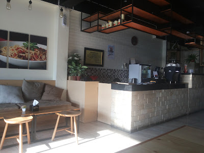 Di sebelah sofa kita bisa lihat tempat memesan makanan sekaligus kasir.