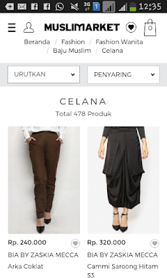 Kebetulan nih, aku ingin membeli celana untuk menambah koleksi di lemari biar nggak itu-itu saja yang dipake. Pas lihat-lihat koleksi celana di muslimarket wuiihh bagus-bagus. jadi makin mupeng nih... Model celananya pun bermacam-macam, kita tinggal pilih yang sesuai dengan "diri kita" atau style pribadi, nggak perlu juga sih meniru-niru style berbusana orang lain. Mana yang membuat diri kita nyaman aja... Ada pants hijab, jumpsuit. legging, overalls, celana panjang dan jeans.