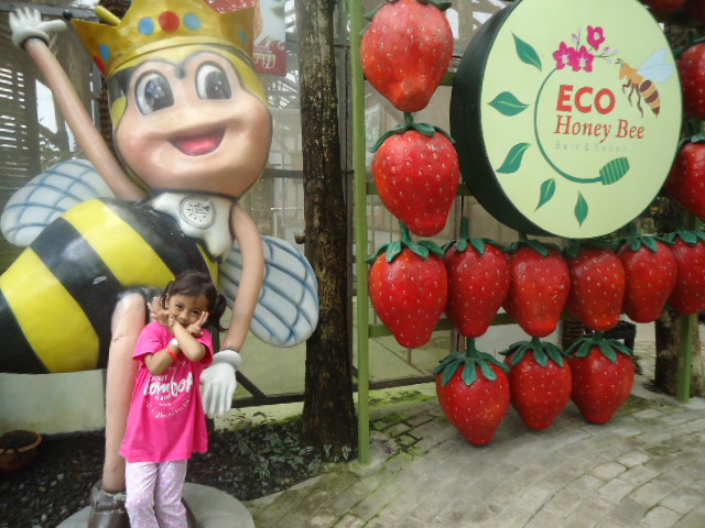 Eh disini ada rumah jamur lho... Di dinding-dindingnya pun dilengkapi dengan berbagai macam keterangan yang berhubungan dengan jamur seperti manfaat jamur, jenis-jenisnya, dan lain-lain. Selain itu di di gerai Eco Honey Bee tersedia berbagai macam madu dalam botol dengan berbagai macam ukuran. Disini terdapat pula keterangan tentang anatomi lebah dan kasta lebah. Ah, jadi ingat lebah madu di AGRO TAWON nih...